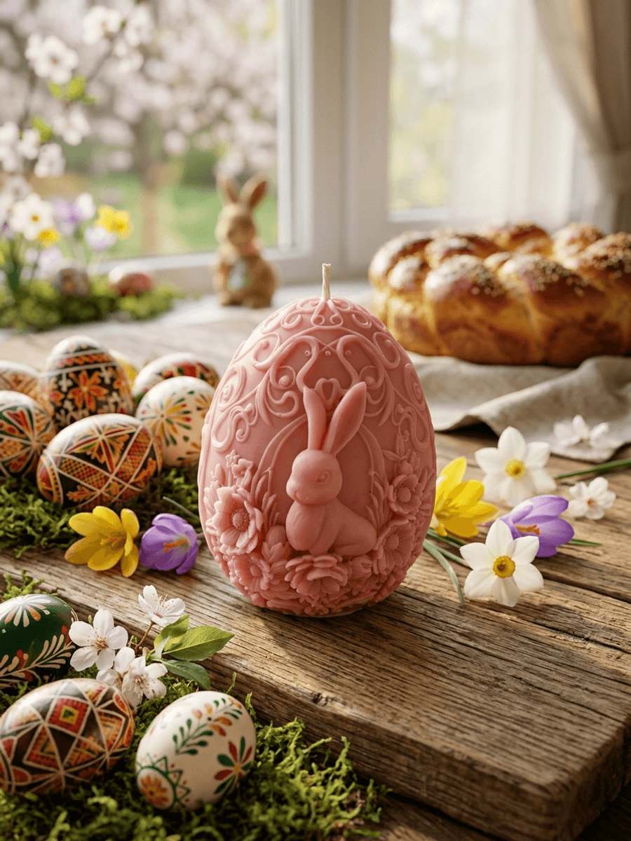 Бутикова 3D Свещ "Великденска Магия" – Релефно Яйце със Заек ✨🐰