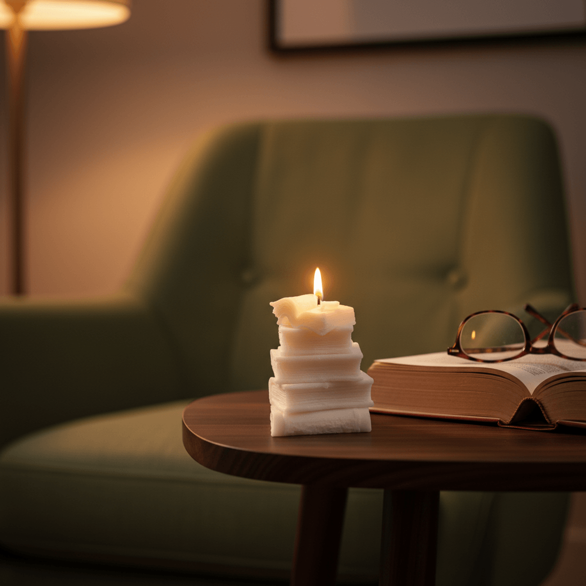 Превърнете четенето в истински ритуал с тази уникална ръчно изработена свещ-скулптура. Дизайнът, вдъхновен от магията на старите библиотеки и уютните кабинети, е перфектното допълнение към вашия интериор. 🥃✒️